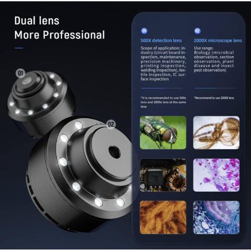 - Thấu kính phát hiện kim loại có độ phóng đại thấp 500X , thích hợp để bảo trì và kiểm tra bảng mạch, kiểm tra in ấn, xác định ngọc bích và đá quý, v.v.
