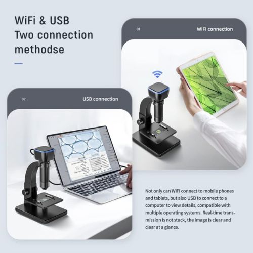 Hai phương thức kết nối: Nó không chỉ có thể kết nối WiFi với điện thoại di động, máy tính bảng mà cổng USB còn có thể kết nối với máy tính để xem chi tiết, tương thích với nhiều hệ điều hành. Đường truyền thời gian thực không bị kẹt, hình ảnh trong nháy mắt rõ ràng.