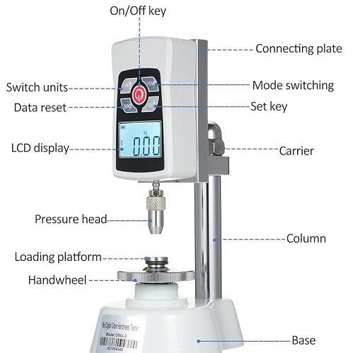 - Máy đo độ cứng hạt kỹ thuật số GWJ3 đo độ cứng hạt nhỏ cho hạt giống, thức ăn chăn nuôi, các hạt giống, hạt ngũ cốc… Giá trị tải tối đa 20kg 0,01kg, Giá trị phân chia tải 196N 0,1N
