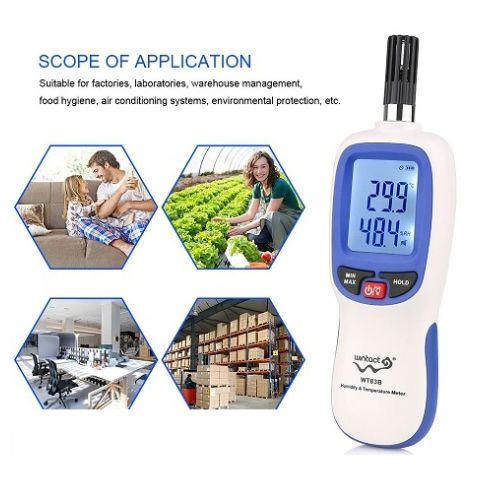 - Máy đo nhiệt độ độ ẩm cầm tay WT83B là thiết bị được sử dụng dễ dàng và thuận tiện để kiểm tra nhiệt độ và độ ẩm môi trương. Nó là thiết bị được sử dụng nhiều trong quản lý môi trường lao động, công nghiêp và kiểm tra đánh giá chuyên nghiệp.