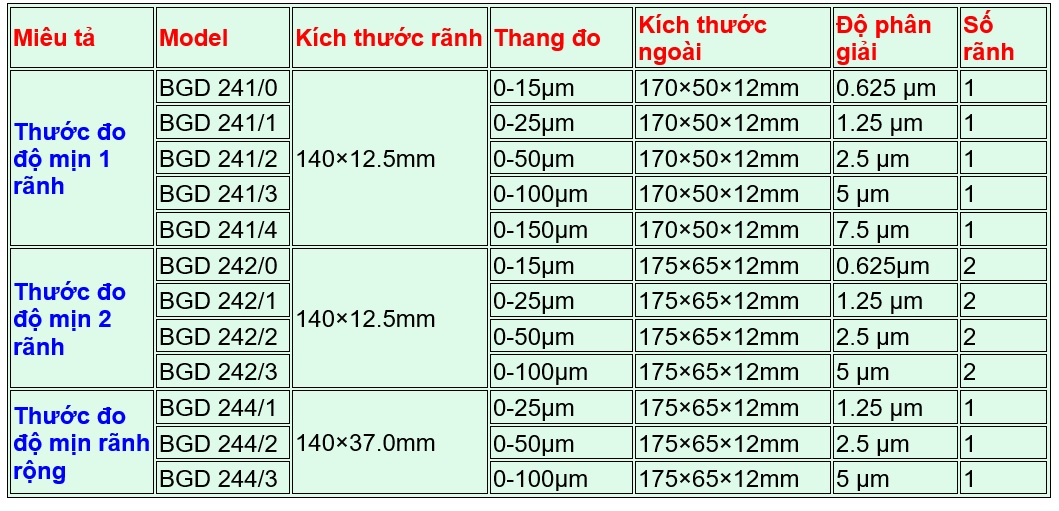 Thước đo độ mịn BGD 241, BGD 242, BGD 244